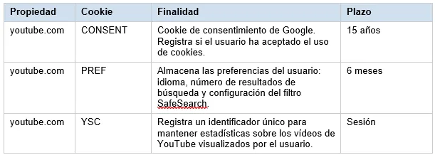 3.1 Cookies técnicas y funcionales (propias y de YouTube)